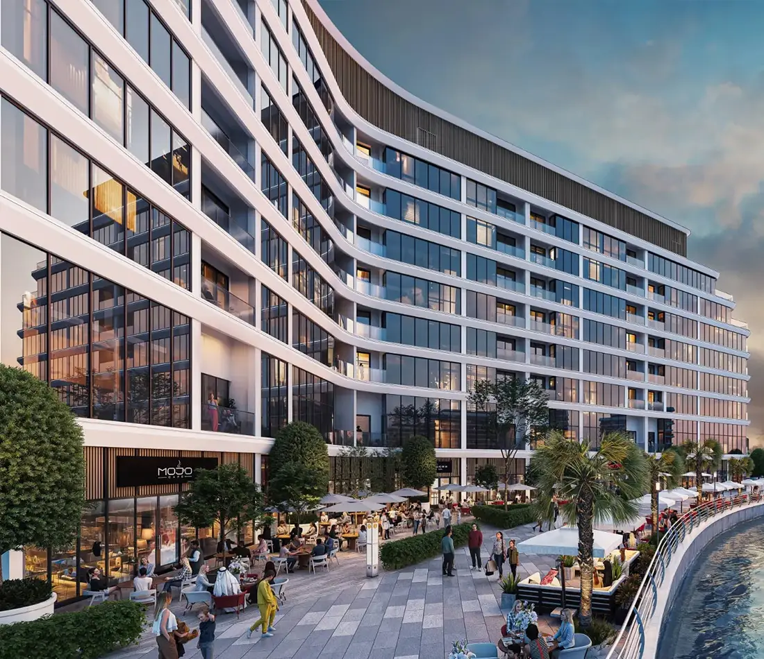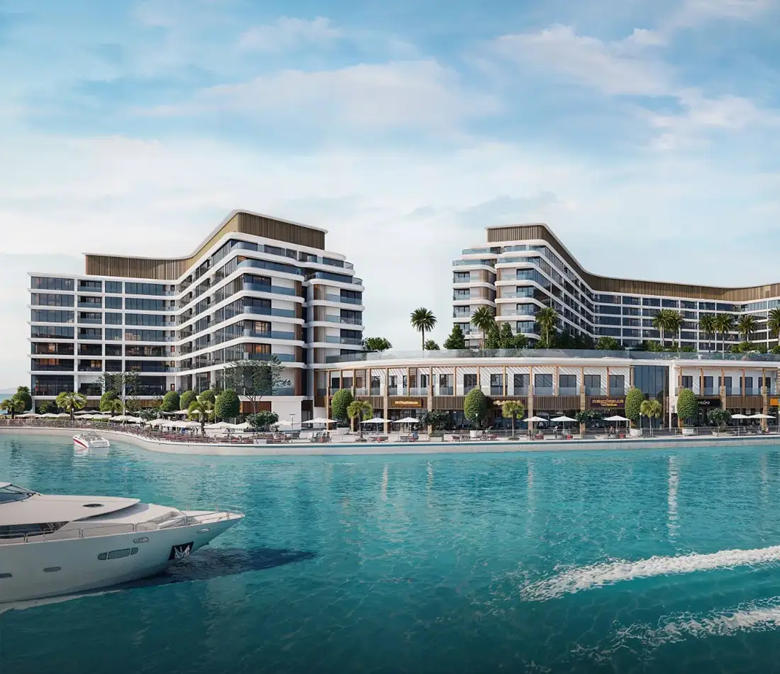 Premium waterfront living: The twin residential towers offer apartments with stunning views of the marina, canal, and sea, providing a high-end coastal lifestyle.